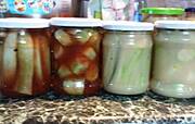 - ogórki kiszone - ogórki kiszone z chili - jedynie słuszne ogórki "tesciowej" ;) - te same, ale nieposłuszne, bo z papryczkami chili - ogórki w zalewie musztardowej- kilka słoiczków tylko, bo nie wiem, czy lubię, przepis znalazłam na WŻ - przecier ogórkowy na zupę - ogóki mrożone na mizerię