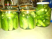 Więc i ja się mogę w końcu pochwalic:) Do niedawna zrobiłam tylko soki z porzeczek czerwonych , czarnych i z wiśni. Od wczoraj siedzę w "ogórasach", zakisiałam dwa wiadra (Jumbo) , dzisiaj zabrałam się za ogórki w musztardzie i ketchupie.