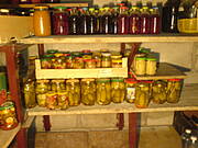 U mnie są ogórki w dalszym ciągu,kiszenie przede wszystkim,ale też m.in. kanapkowe z curry!!dużo!!, musztardowe-mało,bo nie znam jeszcze smaku, królewskie i watykańskie,pikle,korniszony,(przepisy z wż). Trochę kompotów czarna porzeczka,truskawka,wiśnia.... Z jabłek soki i jabłka w karmelu-tak jak rok temu. Kapusta obiadowa (przepis wż) Sałatka z fasolki szparagowej (przepis z wż) Jagody suszone i w słoiczkach. Dżem wiśniowy i truskawkowy.