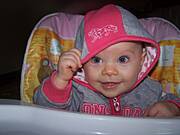 moja je identycznie,tylko ze nie usmiecha sie cudnie jak twoj skarb za to wywala jezyk na cala dlugoscalbo probuje jesc sama co sie konczy przebieraniem i sprzataniem