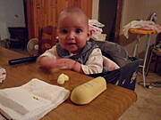 A tutaj, jak przystało na Wielkie Żarcie - mój Synek przy obiedzie :)