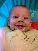 Pierwszy uśmiech Michasia, Tutaj ma 2 miesiące A tak wygląda teraz ( ma prawie 5 miesięcy ). A tutaj, jak przystało na Wielkie Żarcie - mój Synek przy obiedzie :)