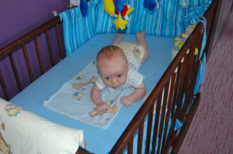 Powiem szczerze,ze jak śledziłam ten wątek, to mi się włosy na głowie jeżyły, ponieważ mój synek miał już ponad 2 miesiące i nie tylko nie chciał leżec na brzuchu, bo jak go kładłam to zaraz wył, ale tez mogłam zapomniec o jakimkolwiek podnoszeniu głowy. Mimo jego uporu, jak tylko miał dobry humor, kładłam go chociaz na moment - 20-30 sekund, tyle żeby sie nie zdążył porządnie wkurzyc. Dalej jednak nie potrafił podniesc i utrzymac głowy. Az tu nagle, własciwie z dnia na dzien cos mu sie odmieniło. Skonczył 3 miesiące i zobaczcie jak pięknie trzyma główkę :))