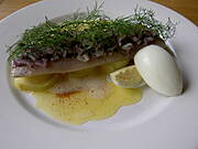 Dzisiaj u mnie byl filet z matiasa na mlodych ziemniakach , polany goracym maslem: