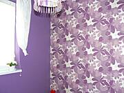 Śliwka węgierka na ścianach- z tym że u mnie- na jednej ścianie- tapeta w kiwaty fioletowo różowo- białe- u mnie do tego jasno kremowa wykładzina bukowa szafa. Do tego fioletu, przychylam się do aggusi- absolutnie bym nie dała czarno białych dodatków- moim zdaniem to nie zrobi "przytulności" - ja poleciałabym raczej w zieleń (fiolet i zieleń- w naturze- bez :)) ) albo granat, albo róż (i to mam- własnie nabyłam różowe pudrowe zasłonki, a na ścianie mam wielki obraz z różową różą :)) ) .