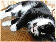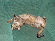 a oto nasz Tygrys Maurycy: Tygrys - za widok na tym zdjęciu, w trakcie zabawy z papierkiem na sznurku a Maurycy, bo ma M na czole . Wedle naszego rozeznania to on - ale jest to rozeznanie laika, na podstawie informacji z netu, w czwartek się okaże w 100 % czy nie trzeba zmieniać imienia