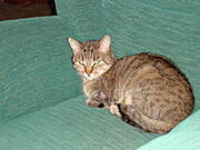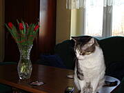 No i kot już miesiąc jest z nami. Strat wielkich nie ma. Jak córka raz na wieczór nie sprzątnęła toalety (licząc, że da się przejść na sprzątanie jedrnorazowe, poranne) - czystoś załatwił się na dywaniku w łazience. Nie cierpi gotowanego kurczaka (surowym zajada się) - wszystkie konserwy z kurczakiem są ledwie zaszczycone (jako sucha karmę musi też dostać tą która mu nie koniecznie smakuje). Teściowie są podrapani okropnie - ale sądzę, że to efekt zabaw z kotem - nie koniecznie wtedy, gdy on ma na to ochotę. Ja nie jestem podrapana - no może ciut na nogach (ale to efekt wspinania się na kolana). Tylko jeden raz zostałam potraktowana jako kawałek mięsa - uziarł mniew palucha. Ale od tego czasu nie karmię go z ręki.