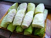 gołąbki zawsze zawijam w białą kapuste. bo takie najbardziej lubie.jest troszke wiecej pracy w obieraniem kapusty ale w kapuscie włoskiej wyglądaja jak w papierze toaletowym. no i smak nie ten.chociaz tesciowa jak zrobi w kapuscie włoskiej jem bez wybrzydzania zeby sobie nie nagrabić :)