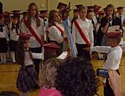 Dzień dobry Wszystkim:) Zwierzaki nakarmione, kawiarenka przewietrzona :) Na stoliku zostawiam kawę. Chciałam się Wam pochwalić moją pierwsząklasitką :) W piątek odbyło się uroczyste ślubowanie klas pierwszych . Tu przewodniczący klas przy sztandarze szkoły a tu przy tablicy