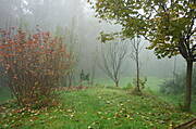 Dzisiaj fajnie się wstawało, bo obudziłam się ze świadomością, że jutro będzie można się wyspać. Rano była tak gęsta mgła, że prawie nic nie było widać. Zerknęłam przez okno i nie mogłam uwierzyć w to, co zobaczyłam a raczej w to, czego nie zobaczyłam. Wyobraźcie sobie, że ktoś wczoraj wysprzątał wszystkie, moje liście. Mam taką sąsiadkę, która czasami robi mi różne, miłe niespodzianki i coś czuję, że to Jej zasługa. Pewnie grabiąc swoje liście zebrała też moje. Wiem jaka to wielka "robota", bo było ich strasznie dużo. Normalnie mnie zatkało. Muszę się jakoś odwdzięczyć. Chyba upiekę mój "idealny" sernik i zaniosę w podziekowaniu.