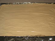 Podzielić na dwie równe części ,do jednej dodając 4 łyżki mleka i 2 łyżki kakao.Wylać ciasto ciemne na jasne.