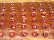 keks na białkach pozostałych od pączków. A w śodku: suszone: żurawiny, śliwki i brzoskwinie. Do tego dołączył kandyzowany imbie, figi i daktyle. Całość mocno podlana żurawinówką