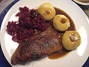 Kilka tygodni temu na kółku kulinarnym w szkole, piekłyśmy gęś. Zmieniłyśmy tylko sposób pieczenia, upiekłyśmy ją w worku foliowym. Pod koniec pieczenia rozciełyśmy worek i gęś się pięknie zrumieniła. Podzieleni byliśmy na grupy, jedna grupa piekła z jabłkami, druga z kaszą i podrobami. My upiekłyśmy gęś po Polsku, wyszła super:) Podaję link do przepisu.