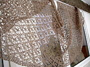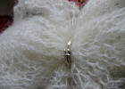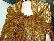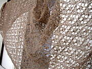 Są bardzo delikatne i cieniutkie (dlatego pokazałam że szal przechodzi przez mój pierścionek, rozmiar 14 :) ). Ale są jednocześnie i bardzo ciepłe, gdyż włóczka zawiera 80% mohairu. Teraz robię , właściwie to już wykańczam taki w kolorach jesieni. Rudo-brązowo-złoty (nie ma złotej nitki tylko włos ma złoty połysk). Nie są to wyroby tanie. Bo i materiał do ich wykonania jest dośc drogi i samo wykonanie wymaga duuuużo pracy. Ale na razie są klientki na nie, z czego się bardzo cieszę.