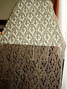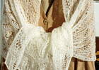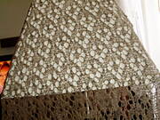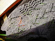 moim zdaniem taki szal jest rzeczą nie tylko piekną ale też i praktyczną, bo nie tylko zdobią ale również dobrze grzeją pomimo ażuru. Są zrobione z mieszanki mohairu (ok. 70%) z innymi dodatkami. Ale nie syntetycznego mohairu, jakich pełno w pasmanteriach, gdzie na etykiecie wielkimi literami pisze mohair a w składzie 100% poliester. Cena , owszem, wcale nie jest z tych najtańczych, bo po pierwsze włóczka jest bardzo droga a po drugie wymaga ogromu pracy, bo robiony jest na drutach 2,5 - 3mm z cieniuteńkiej nitki.