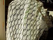 moim zdaniem taki szal jest rzeczą nie tylko piekną ale też i praktyczną, bo nie tylko zdobią ale również dobrze grzeją pomimo ażuru. Są zrobione z mieszanki mohairu (ok. 70%) z innymi dodatkami. Ale nie syntetycznego mohairu, jakich pełno w pasmanteriach, gdzie na etykiecie wielkimi literami pisze mohair a w składzie 100% poliester.