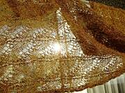 ten ostatni, oliwkowy, był wyjątkowo bardzo pracochłonny. Generalnie, każdy z nich zajmuje dość dużo czasu, bo są robione z super cieniuteńkiej włóczki (motek ważący 25g ma ok. 250-275 metrów włóczki). Cały szal o wym. ok. 200 x 70-90cm waży nie więcej niż 100g, a najczęściej ok. 75-80g. Jak delikatna jest to robota, to można się przekonać, przeciągając szal przez obrączkę .