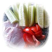 Serek wiejski, pomidory i szynka drobiowa.