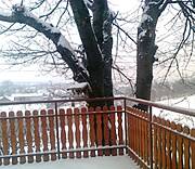 Po wczorajszej pięknej słonecznej zimowej pogodzie nadszedl dzień pochmurny ze śniegiem... Sypie, sypie, sypie... Auto moje znika mi coraz bardziej z oczu...