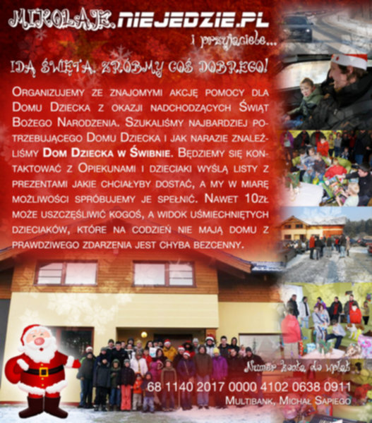 Jest taka akcja "Szlachetna paczka". Moim zdaniem to dobry pomysł, można sobie wybrać rodzinę, której chce się pomóc, obdarować tym co sie chce. Przynajmniej wiem do kogo trafiają dary i że na pewno trafiają.