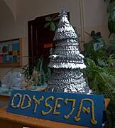 Z makaronu robiłam już choinki, bardzo proste, bo pierwsza wykonywana była z 7-letnią chrześniaczką, a druga z Odyseuszami, tak dla wesołości przedświątecznej i zdobiła szkołę zamiast żywego drzewka - trochę nam krzywo wyszła, ale i tak była fajna :)