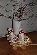 Potem przykleiłyśmy z mamą gąbkę kwiaciarską , taką sztywną , na to znów poszedł klej i ułożyłyśmy gałązki, które się przykleiły, reszta dodatków jest na drutach:)