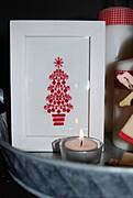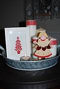 Co roku zamierzamy kupić sztuczną i co roku kupujemy żywą. Ma swój niepowtarzalny urok. W tym roku mniej sypiąca i mniej tradycyjna, ale doskonała do nurkowania pod nią - jodła. :) Do tego dwie mniejsze choineczki - haftowane na czerwono.