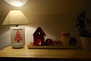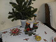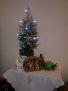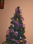 Moja mini choineczka,prawdziwa, w doniczce, może uda się ją zasadzić na działce, a obok komputerowa lampka - nibychoinka. Pozdrawiam !