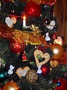 To może i ja pokażę naszą choinkę, nazywam ją "wielostylową". Próbowałam kiedyś ubierać choinkę w jednym kolorze, w dwóch, ale najpiękniejsza jest taka wielokolorowa z różnymi różnościami:aniołki, gwiazdki, pierniczki itp.