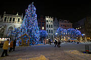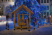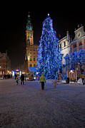 Gdańsk w tym roku znów błysnął olbrzymią choinką oświetloną milionem kolorowych lampek. I ładne i oczopląsu można dostać. Jak w ubiegłym roku oprócz bombek z herbem miasta zawisło wiele kreatywnych ozdób wykonanych przez dzieci. Przed drzewem gigantem drewniana szopka, ta sama co ubiegłej zimy, skromna i prosta.