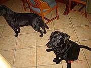 Moje zwierzaki Kocur Matylda, labradory Rudi i Maxi, a te maluchy to dzieci Maxi z 2005 roku.Rudi to jeden z nich.Swoje zwierzęta karmię i domowym jedzeniem, i gotowym.Z przewagą gotowego. Maxi ma wrażliwy żołądek, natomiast jej synek je wszystko jak leci .
