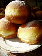 aaaa dodam, ze nie znosze paczkow z marmolada ani z tym slynnym rozanym nadzieniem;) te, ktore tak bardzo mi smakuja to z powidlami albo budyniem, mniaaam;))a najcudowniejsze były pączki pieczone przez moja ś.p. babcie..specjalnie dla mnie robila polowe porcji bez nadzienia;)mam ten smak na koncu jezyka,eh...:)