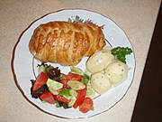 z farszem, kiedyś odgrzewałam upieczone ciasto francuskie w mikrofali i