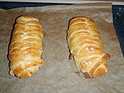 Dokładnie tak jak piszesz. W moich przepisach jest krok po kroku jak zrobić.rozcięte,dajecie farsz i zaplatacie po bokach,tak? Ciasto z Biedronki jest