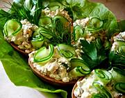 Zrobiłam z tego co akurat miałam w domu czyli biały ser, śmietana, rzodkiewka i szczypiorek, sól, pieprz. Zwykła pasta na kanapki, ale w skorupkach smakowała inaczej. Szczególnie synio zachwycony był. Na pewno jeszcze pokombinuję z farszem do skorupek i przepisy z opakowania też mam zamiar wypróbować. Podsumowując- fajny sposób na przekąski.