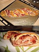 Możesz spróbować takiego ciasta. Przepis mam z jakiegoś blogu kulinarnego i oryginalnie jest to plecionka z dżemem. Ciasto ładnie się formuje i jest smaczne. Możesz najpierw wykleić spód formy, żeby zapewnić kształt a potem włożyć do środka resztę ciasta.