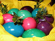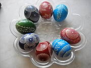 A te pisanki-sliczne.Umiem takie robić.Woskiem i szpilką))Tylko moje sa bardziej nieporadne.Z pospiechu robie tylko cebulaki , które później przecieram olejem.umiem też farbować czerwona kapustą, ale cebulaki fajniejsze))To pozdrawiam serdecznie na Święta i nie tylko.M