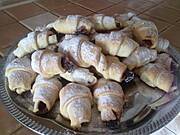 PRzyjdzie ktoś ze mną posiedzieć? PRzyniosłam pełną tacę rogalików krucho-drożdżowych z konfiturą różaną. Taką prawdziwą z płatków róż zebranych w Bieszczadach (dostałam od znajomej). Zmieszałam z powidałami, bo w wersji niezmieszanej to nie do zjedzenia jest :)) Smacznego!