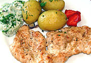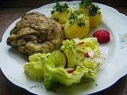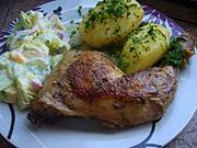 Dziś: młode ziemniaki z koperkiem, kaczka nadziewana i sałatka z świeżych warzyw.