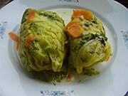 Młoda kapusta i pierś z kurczaka nadziewana masłem czosnkowo-koperkowym i żółtym serem. Zapomniałam o deserze zrobionym przez Tamiśkę : truskawki ze śmietaną :)