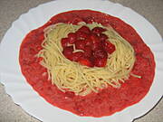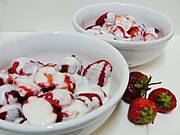 Może podpowiem jak ja to robię, więc rozdrobnione truskawki mieszam z jogurtem, można ze śmietaną( jesli nie trzeba liczyć kalorii) dosłodzić do smaku, polać sosem ugotowany makaron, i wcinać:)