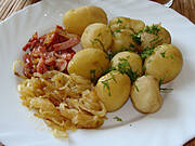 Wczorajsze mięso duszone, ziemniaki z koprem , młoda kapusta.