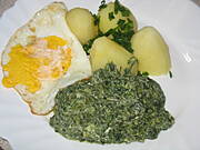 Dzisiaj jajko sadzone, młode ziemniakami z koperkiem, świeży szpinak, maślanka.