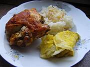 Niedziela: rosół z makaronem tradycyjnie i ziemniaki, udka z pieca i surówka wiosenna z kapusty młodej .