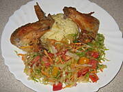 A u mnie dzis wena twórcza - karkówka z dzika zrobiona wg chińskiego przepisu " na kure królewskiej kurtyzany", (uff wyszlo) do tego kasza gryczana i surówka z młodej kapusty, wymieszana z dostepnymi balkonowymi ziołami wraz z oliwa.