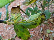 Mnie się tak stało jak wyłożyłam pod różą agrowłóknine i wysypałam korę.Podobno róże nie lubia kory. Postępowałam jak radzą dziewczyny.