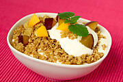 U mnie dziś na śniadanie jogurt naturalny z musli imbirowym oraz owocami