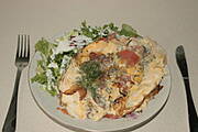 dziś, omlet z cukinia i pietruszką, z nadzieniem z pokruszonego twarogu, + chleb i herbata