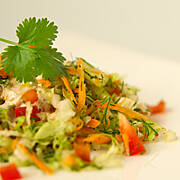 Surówkę z pekinki, marchewki, ogórka, pora, papryki i koperku - z sosem śmietanowo-jogurtowo-majonezowym :)