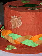 A może zrób z bristolu czapkę w kształcie stożka i oblep go jesiennymi liśćmi, lub przyklej z gazet rysunki jesieni drzewa grzybki wszystko co wiąże się z jesienią można oczywiście namalować. Myślę że to chyba najprostszy sposób, a i myślę że może być efektowny.
